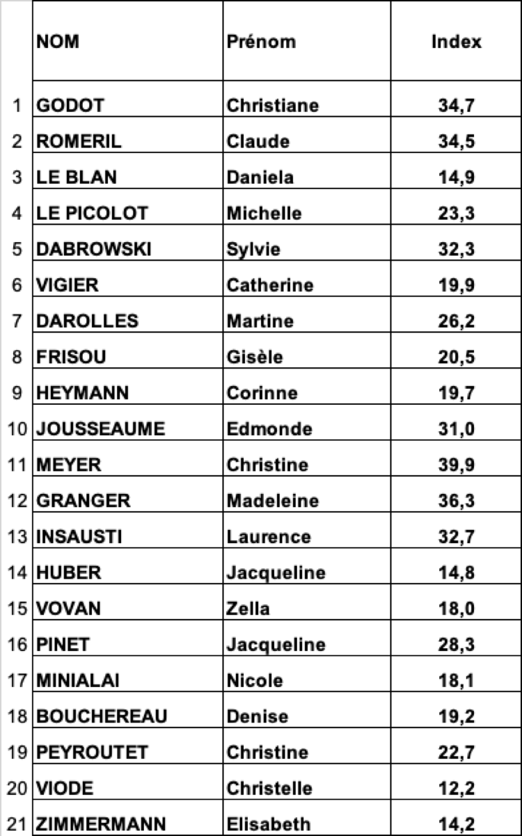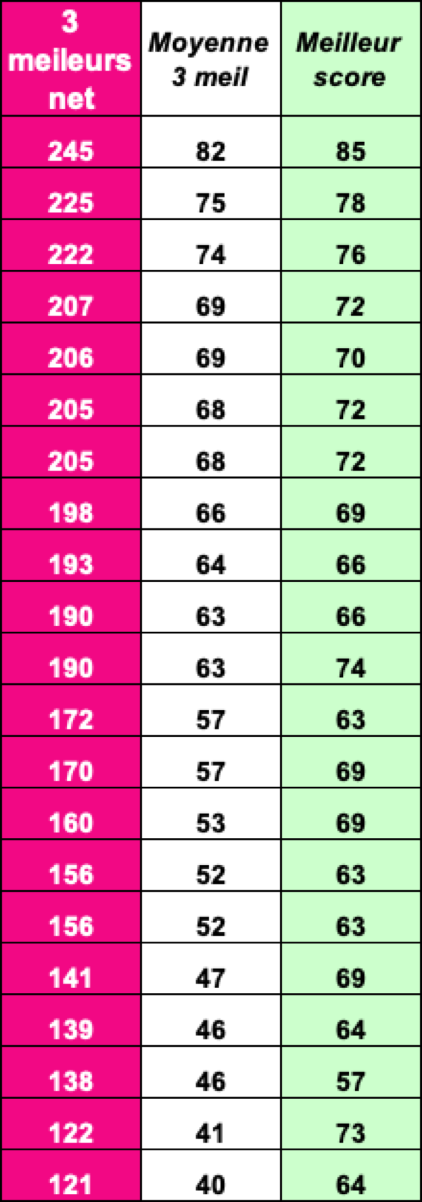 Fil Rouge Classement NET - DAMES