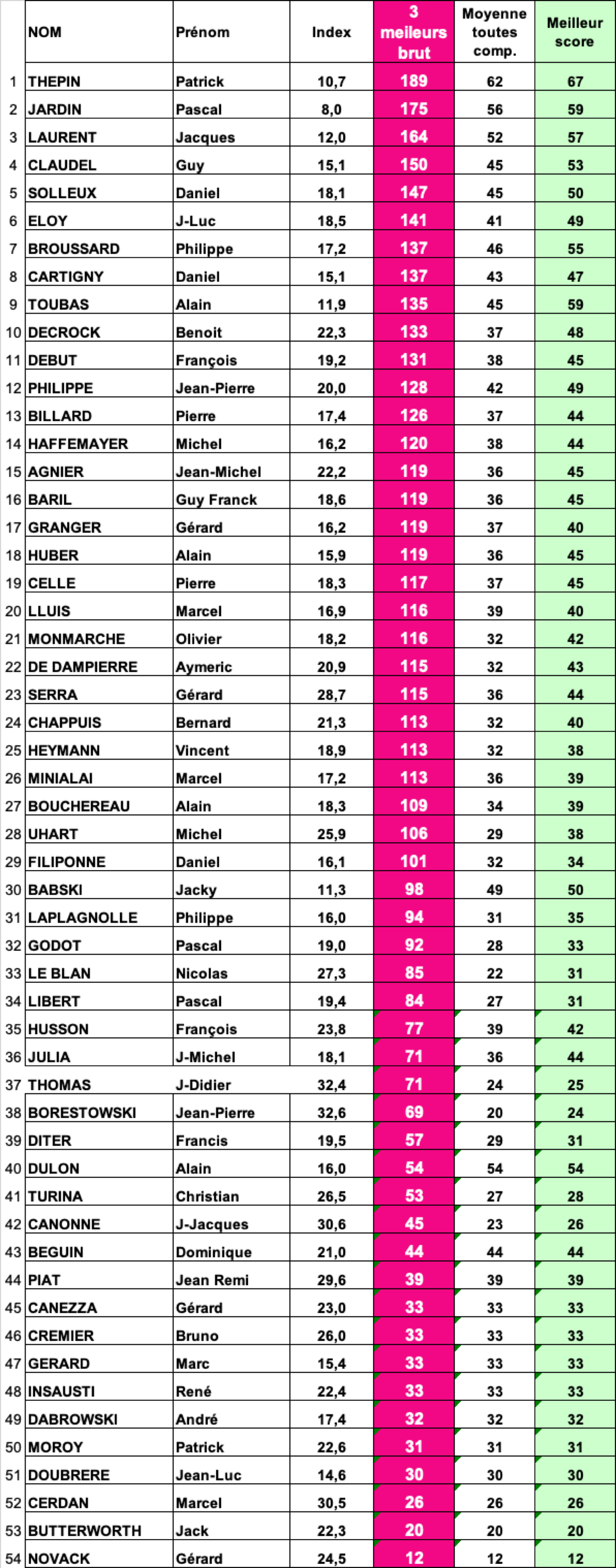 Fil Rouge Classement BRUT - HOMMES