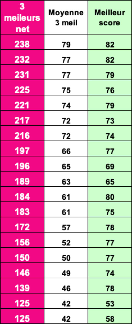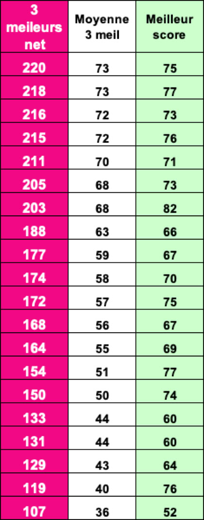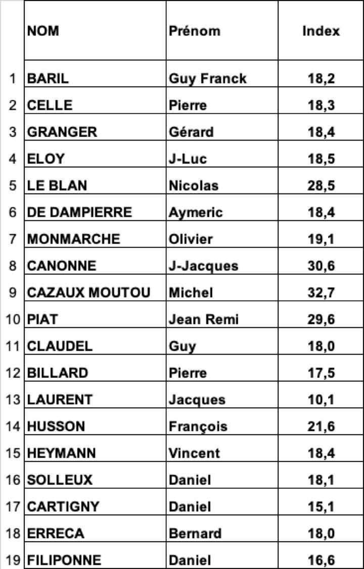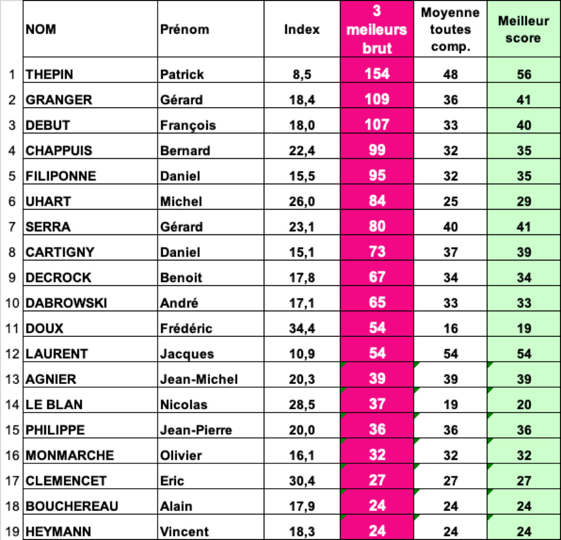 Fil Bleu Classement BRUT - HOMMES