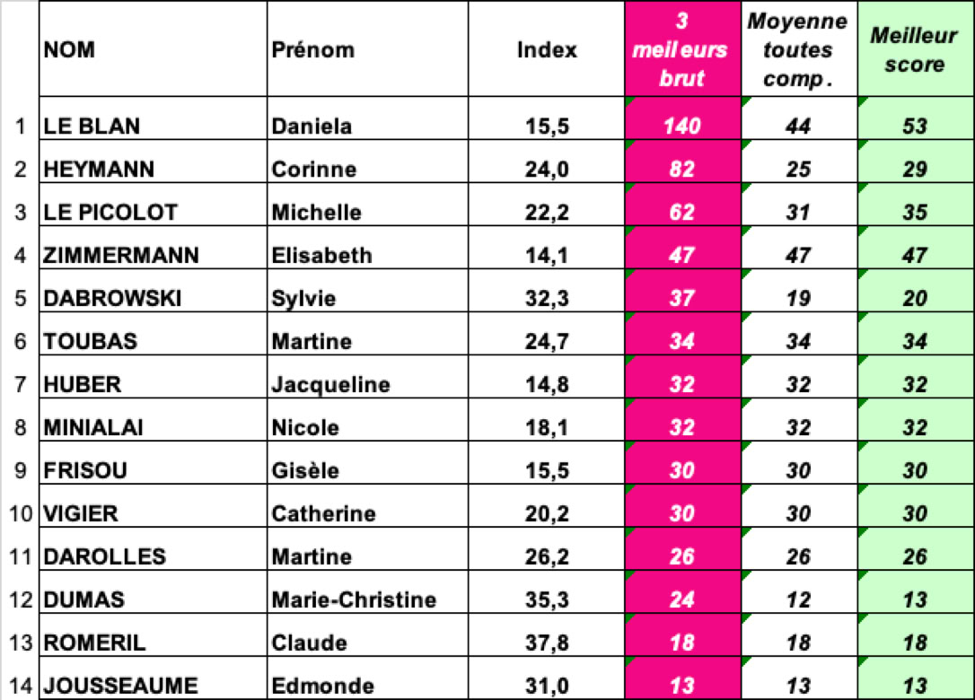 Fil Rouge Classement BRUT - DAMES