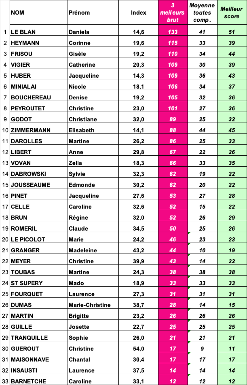 Fil Rouge Classement BRUT - DAMES