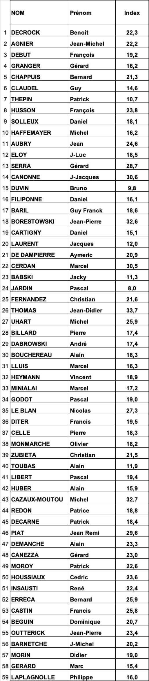 Fil Rouge Classement BRUT - HOMMES