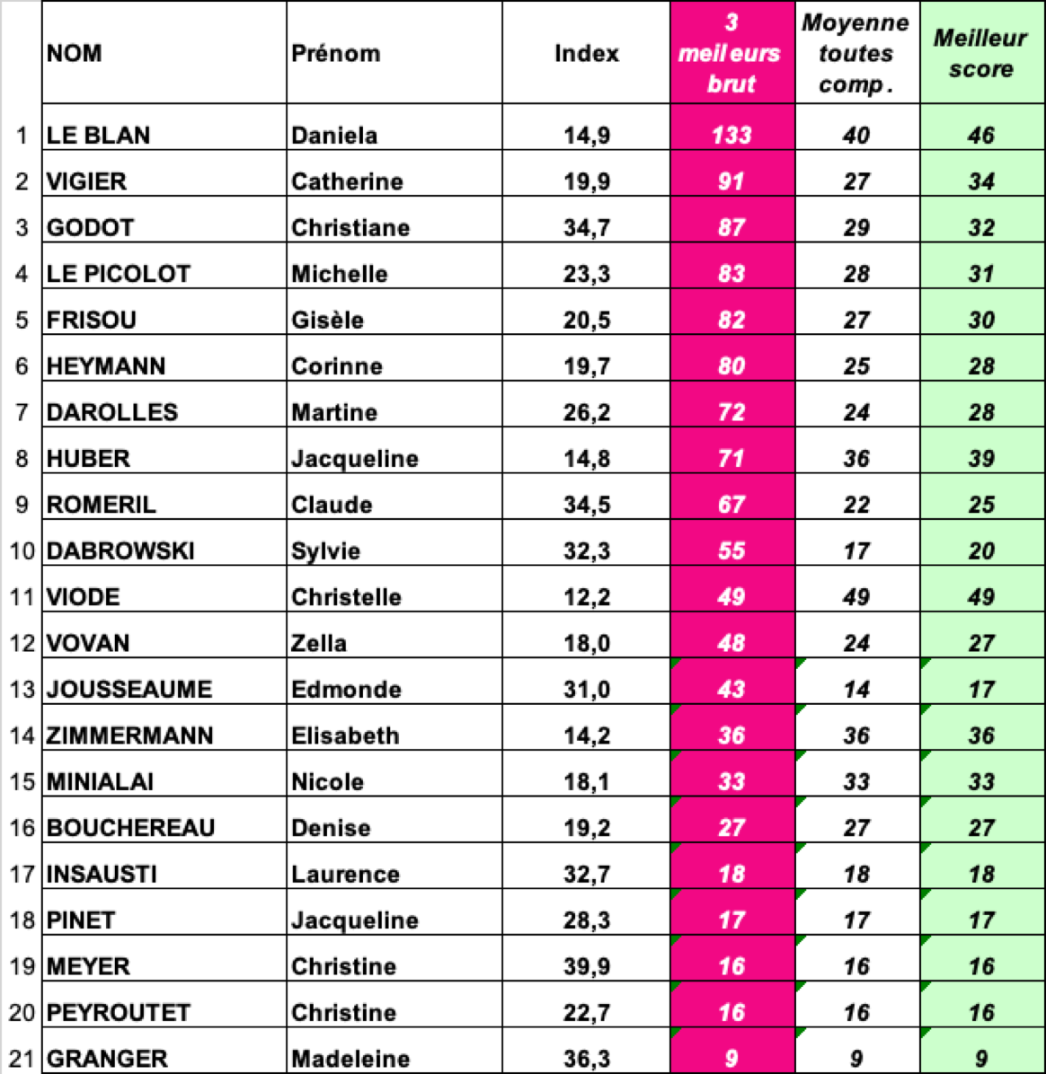 Fil Rouge Classement NET - DAMES
