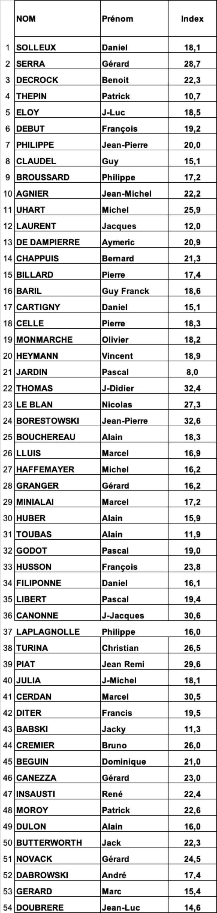 Fil Rouge Classement BRUT - HOMMES