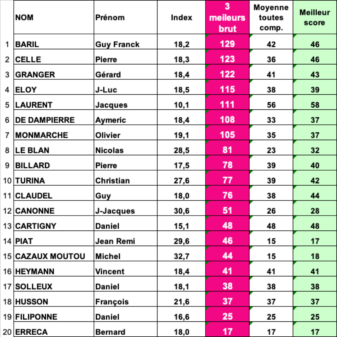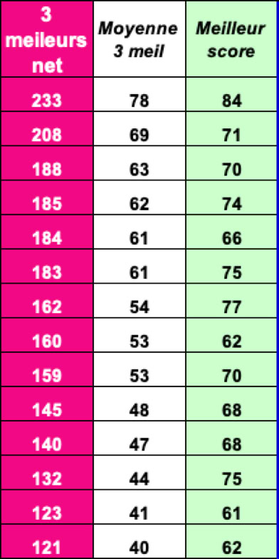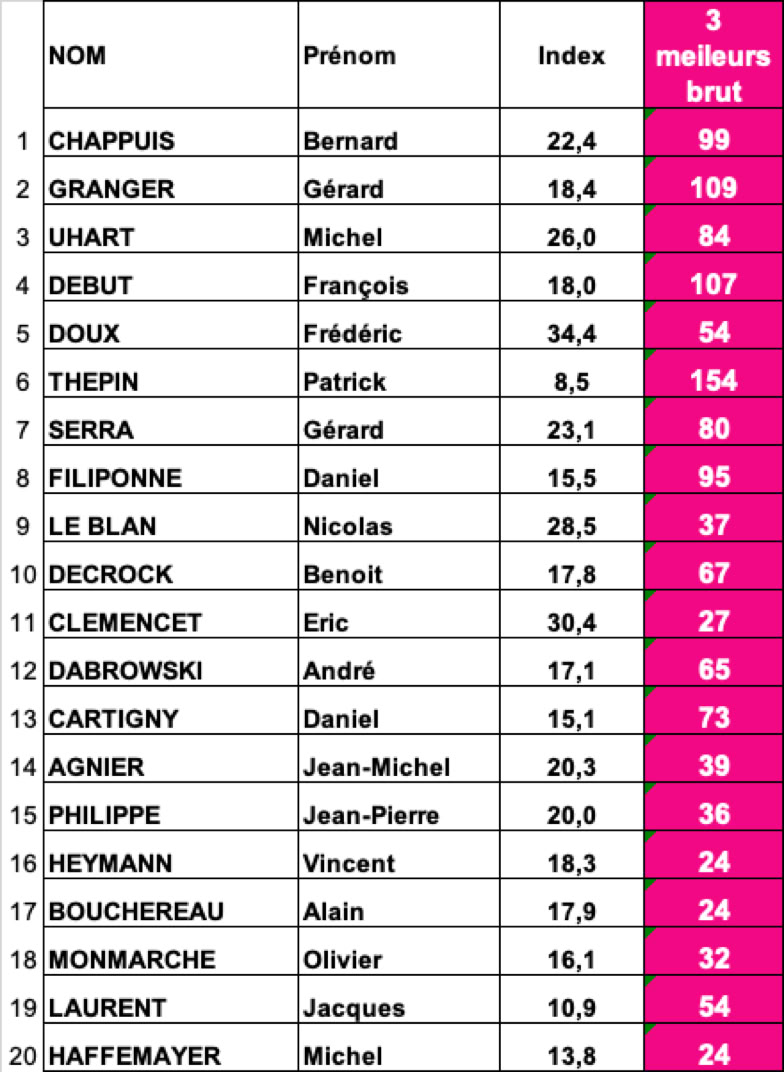 Fil Bleu Classement BRUT - HOMMES